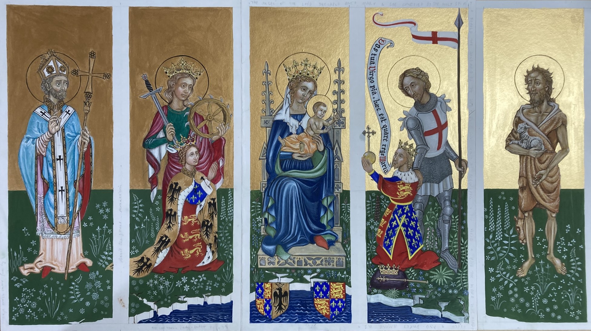 - Reconstruction of Lost Rome Panel (detail) – Blessed Virgin Mary, Christ Child, St George & King Richard II – Egg tempera and Acrylic on paper